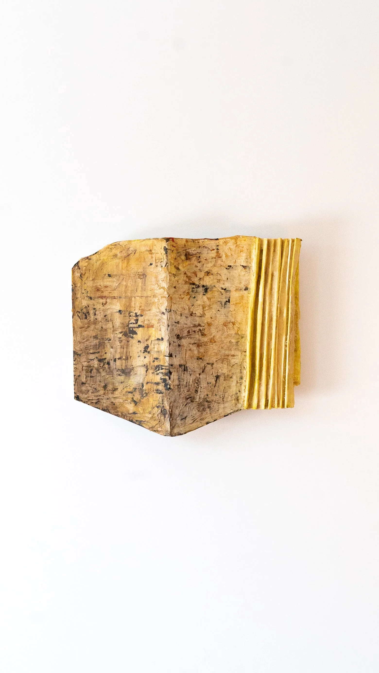 Their construction is measured, not always clear of the direction the piece will take is important, engaging in materials and responding to what is unfolding in front of me has been fundamental to my practice. Layer upon layer of pre-used paper collected from family members, built on frames of locally made rope or recycled cardboard packaging, and finished with beeswax, powdered marble, bookmakers thread and watercolour. Their delicacy requires an interior space, away from the elements they are contemplating.